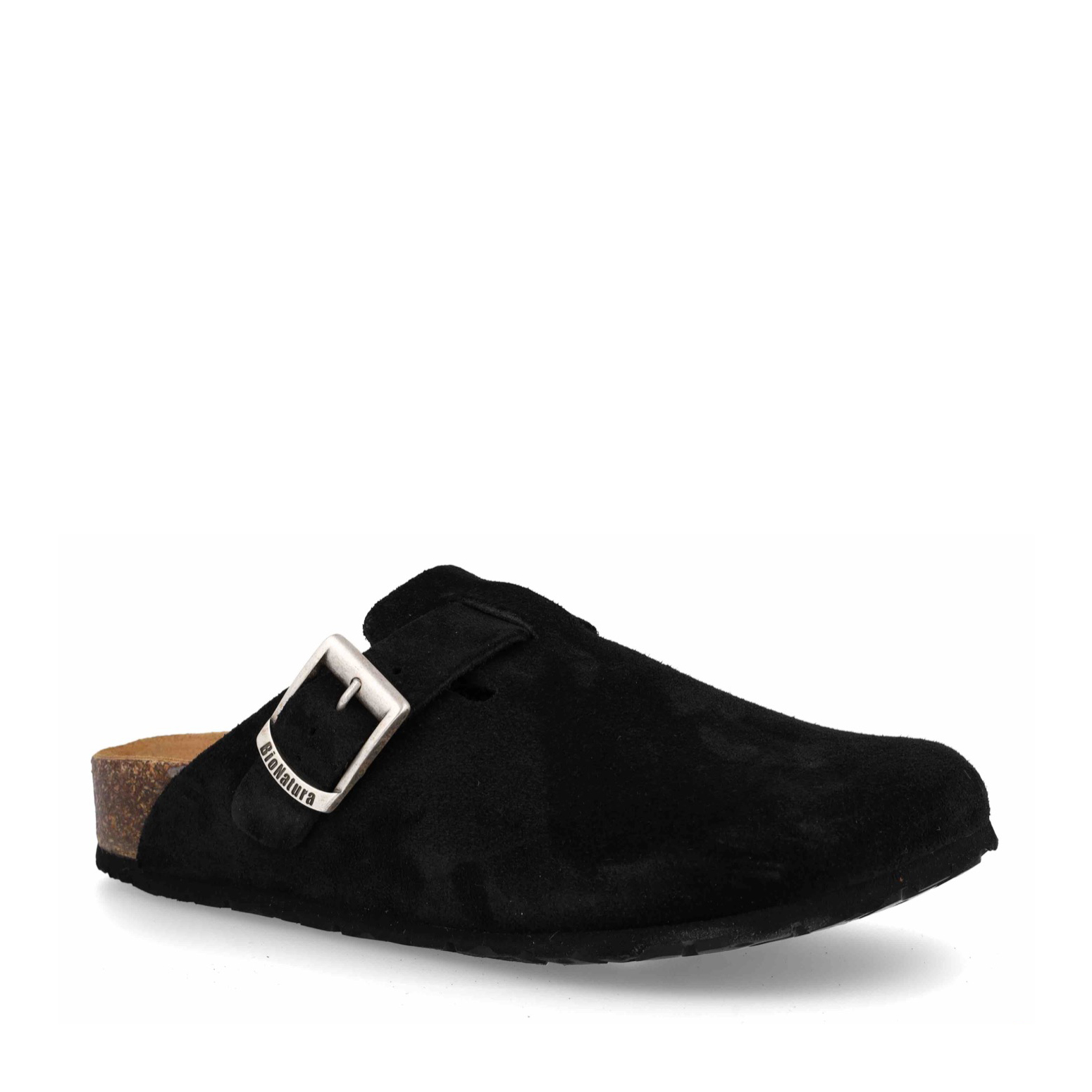 Sabot 11 Vegas, Bionatura. Sabot Bionatura in camoscio nero con sottopiede anatomico imbottito e fondo in gomma. Tomaia regolabile con fibbia.