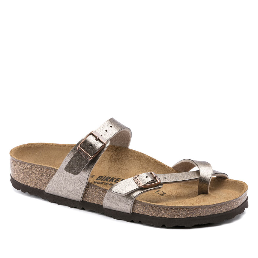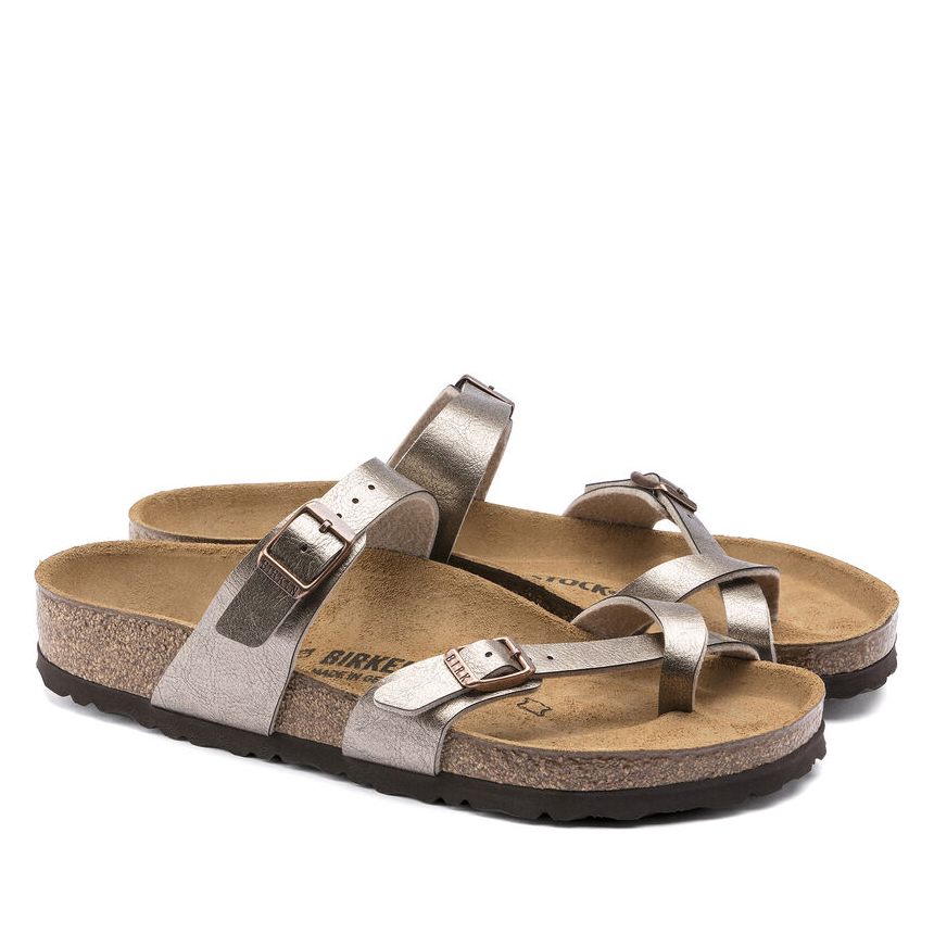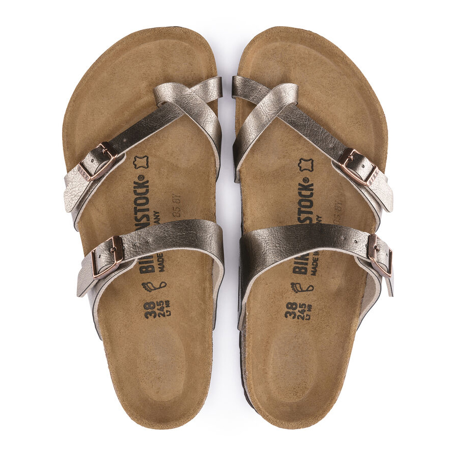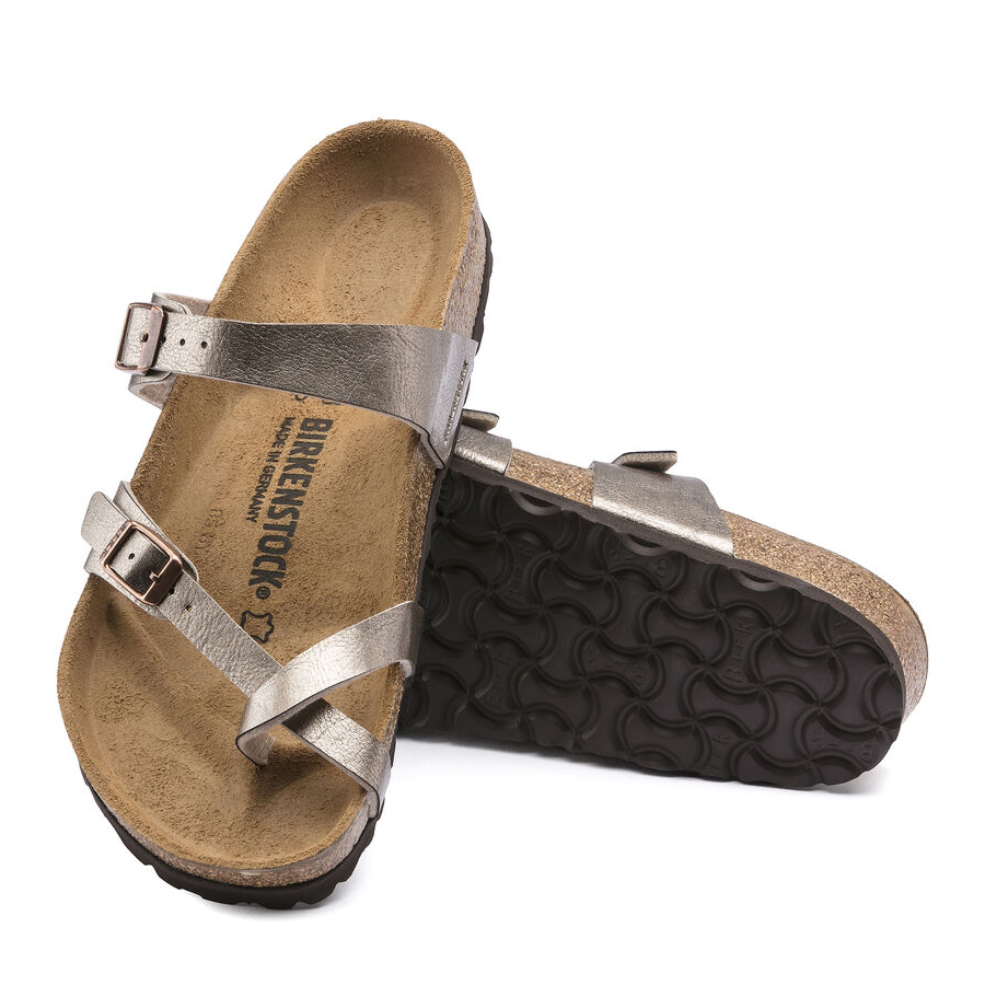 Forma slanciata e moderna! L'infradito BIRKENSTOCK Mayari conquista per il suo look armonioso che unisce il design al comfort. Questa versione del sandalo è caratterizzata da un rivestimento brillante effetto seta. La tomaia è in materiale sintetico Birko-Flor® dermoaffine e resistente.