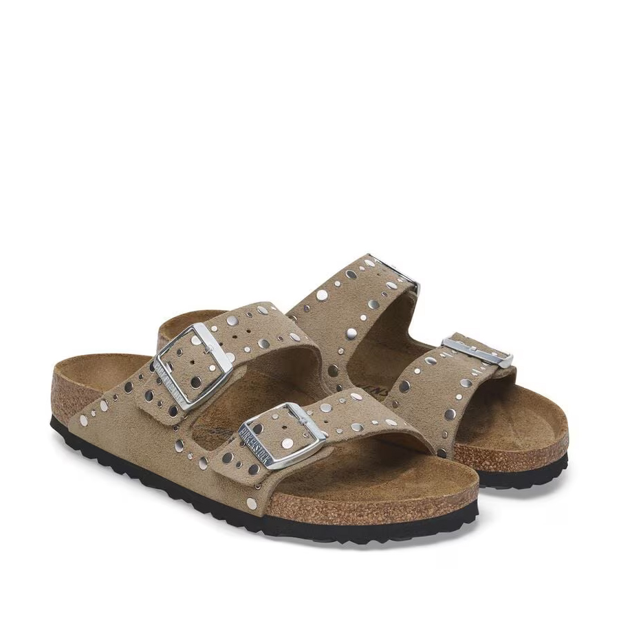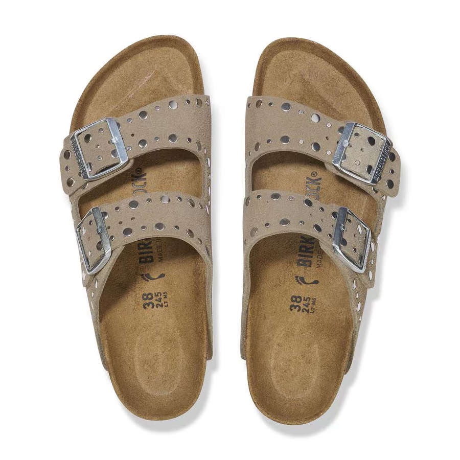 Questo delicato classico con due cinturini è sinonimo di design intramontabile ed è divenuto già da tempo una comodissima scarpa di culto. Questa variante è caratterizzata da rivetti applicati con precisione, inseriti saldamente nella pelle senza controparte e non troppo in profondità. Grazie al complesso processo di lavorazione, non daranno alcun fastidio mentre indossi i sandali. Un assoluto protagonista! La tomaia è in pelle scamosciata particolarmente morbida che aderisce al piede come una seconda pelle.