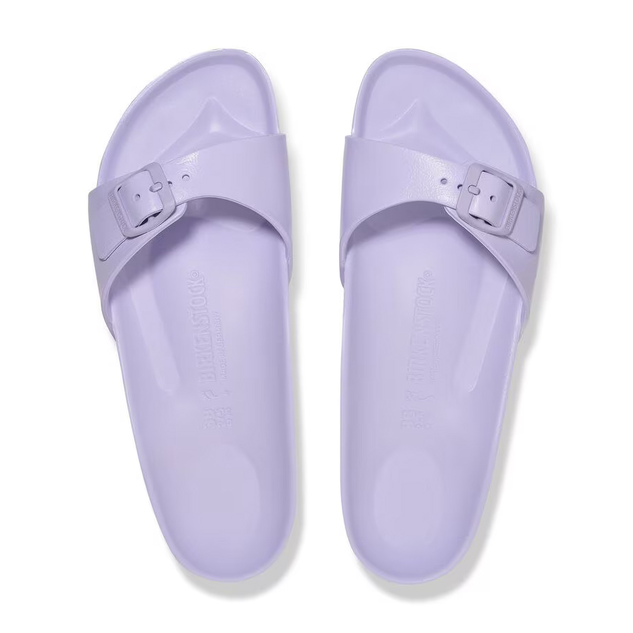 Birkenstock Madrid EVA, un materiale plastico che le rende perfette per andare in piscina o al mare. La pregiata plastica EVA, inodore e priva di sostanze nocive, riunisce in sé molte caratteristiche positive: è molto leggera, estremamente elastica, ammortizzante y dermoaffine. Plantare BIRKENSTOCK dalla forma anatomica in EVA Tomaia, sottopiede, suola: EVA creata da un pezzo unico Dettagli: impermeabile, lavabile, ultraleggero