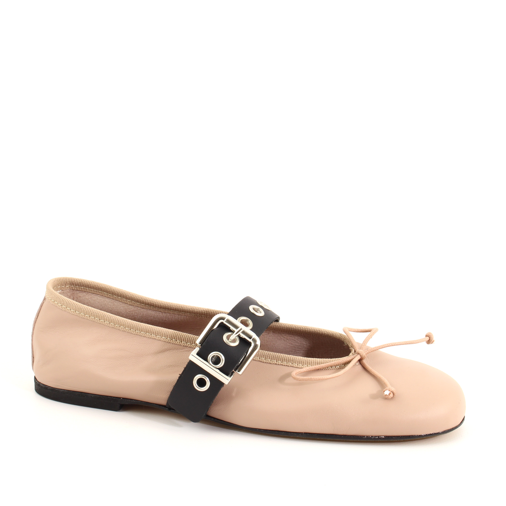 Realizzate artigianalmente in Italia, combinano la delicatezza della pelle nude con un tocco rock dato dal cinturino in pelle nera con fibbia silver. Il dettaglio del laccetto con fiocchetto sul davanti aggiunge un'aria romantica e femminile.