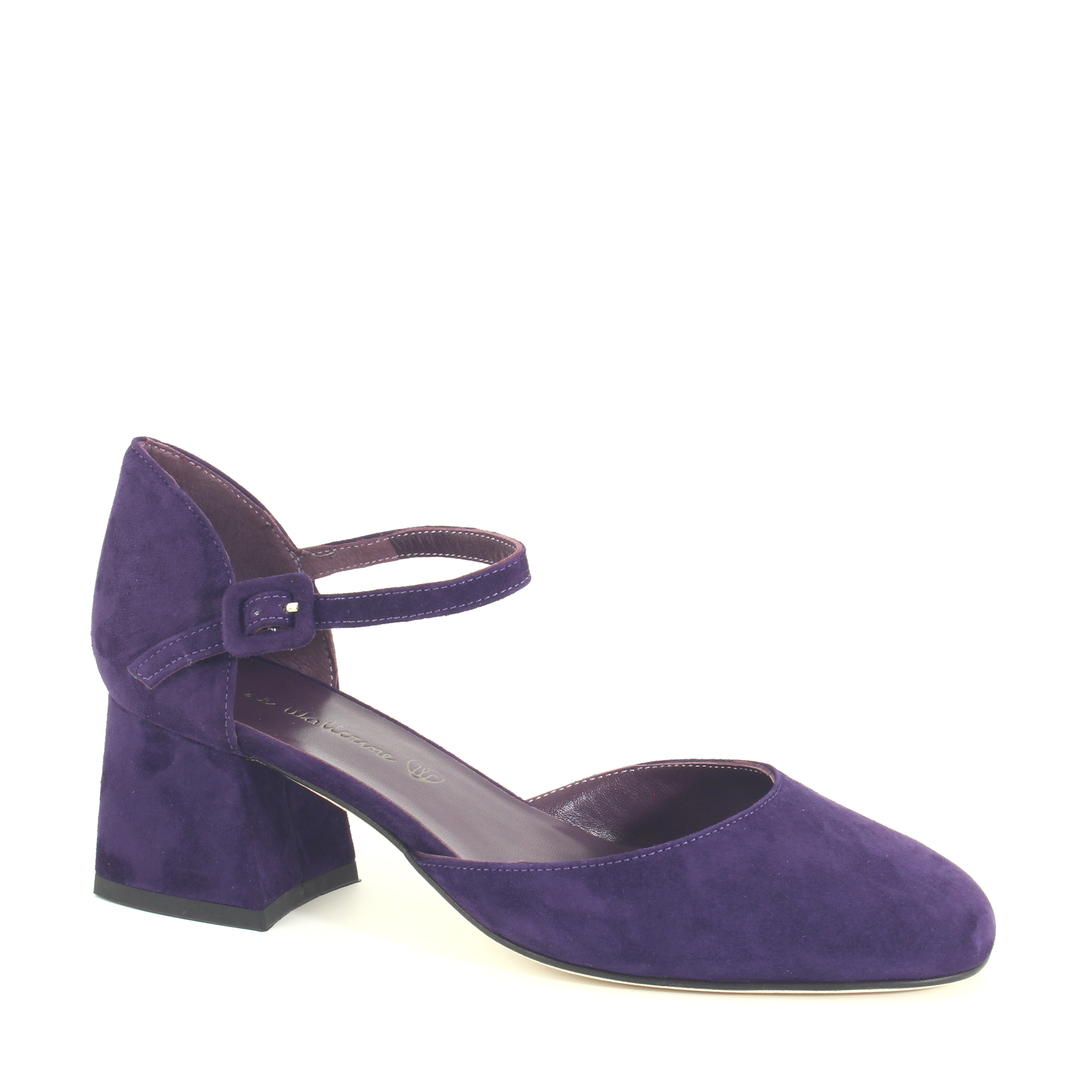 Décolleté viola con tacco medio di 6 cm.