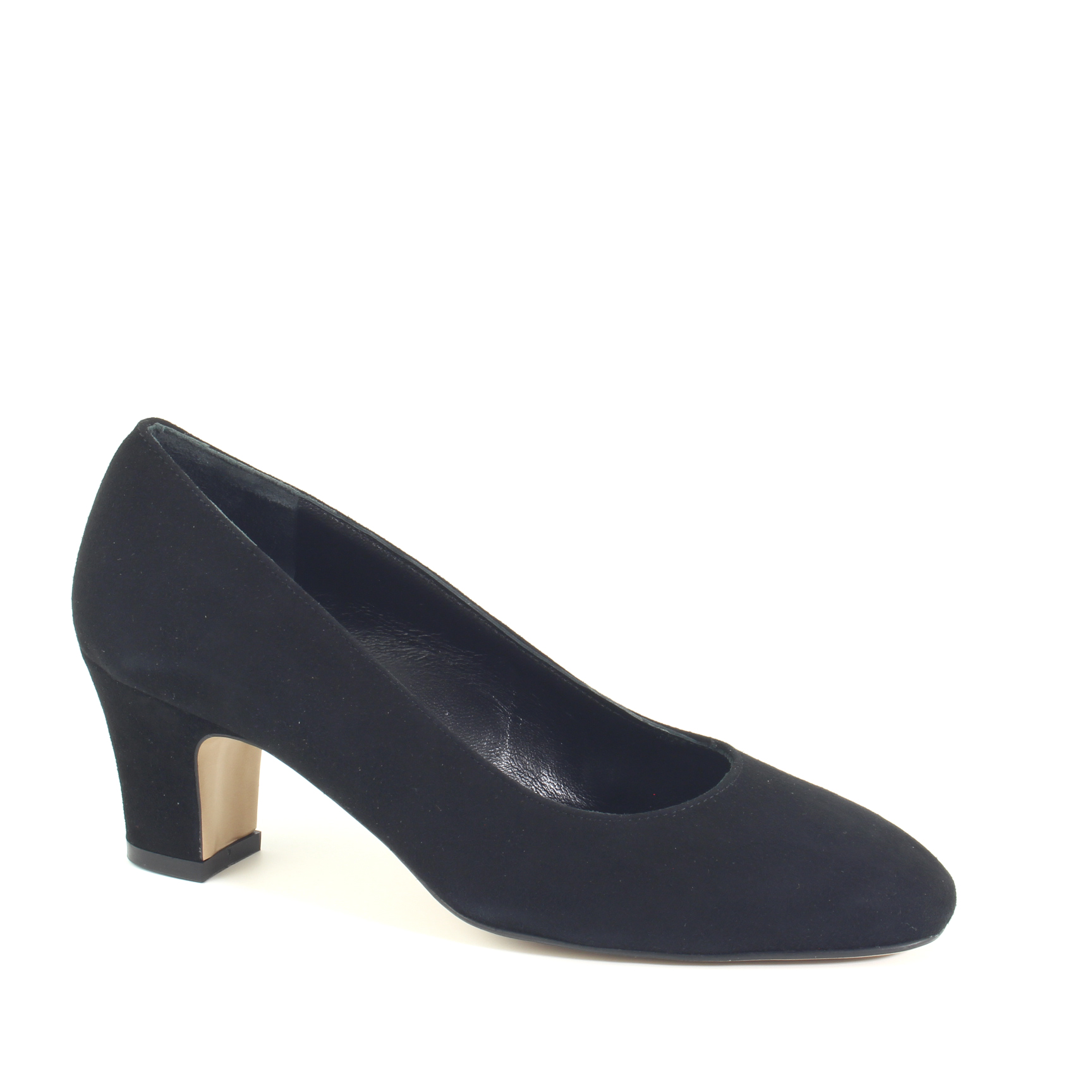 Décolleté in camoscio nero con tacco largo, una scarpa classica e versatile. La tomaia in camoscio nero conferisce un aspetto elegante e sobrio, mentre il tacco largo aggiunge stabilità e comfort durante l'uso. Questa scarpa è una scelta ideale per molte occasioni, dalla vita quotidiana alle serate più formali, poiché si adatta facilmente a vari stili e abbigliamenti.