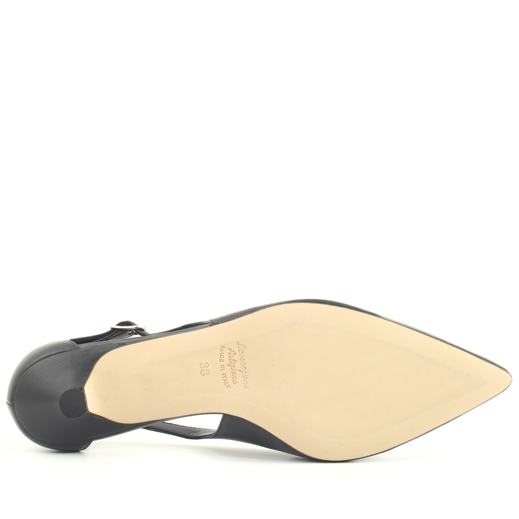 Dècolletè tacco basso forma a punta in pelle di capretto con apertura laterale, elegantissima e femminile. Linea essenziale e tacco 3 cm. Questa decolleté è realizzata con un tacco coda: la suola è un tuttuno con il tacco. Questo modello è proposto in diversi colori basici. Realizzata artigianalmente in Italia.