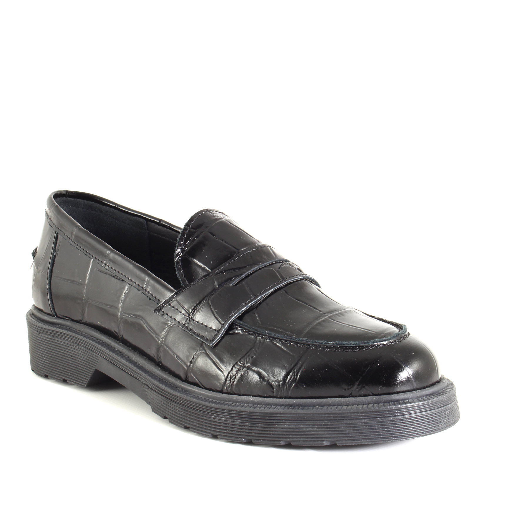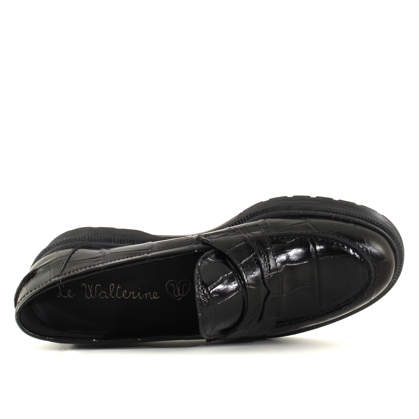 Quando i dettagli contano, questo mocassino sa parlare forte ma con eleganza. La pelle goffrata effetto coccodrillo nera non è solo un pattern: è texture, è luce che ondeggia, è una promessa di carattere. È come indossare un piccolo capolavoro sotto al tuo passo.