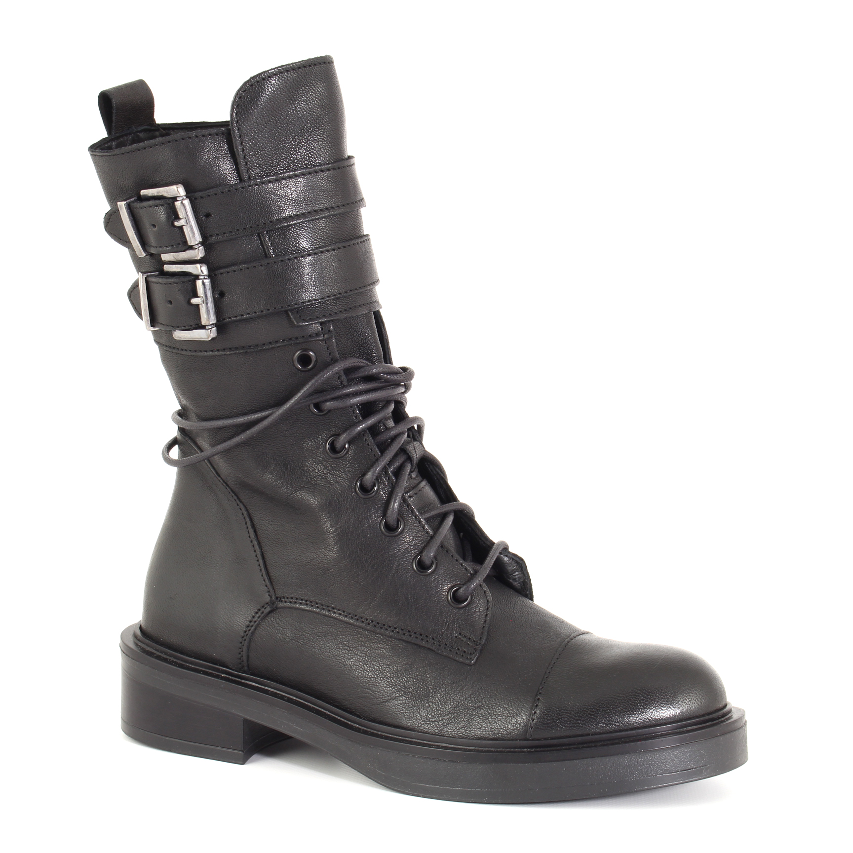 Questo stivale Gabriel di Le Walterine in pelle nera è il fratello maggiore un po' ribelle di tutti gli stivaletti. Con quelle doppie fibbie sulla parte alta e i lacci che sembrano dire "non mi accontento di poco", è perfetto per chi vuole un look grintoso ma comunque pratico, grazie alla cerniera laterale che rende tutto più semplice. Con il suo mix di dettagli militari e urban, ti sentirai pronta a conquistare il mondo... o almeno la tua giornata!