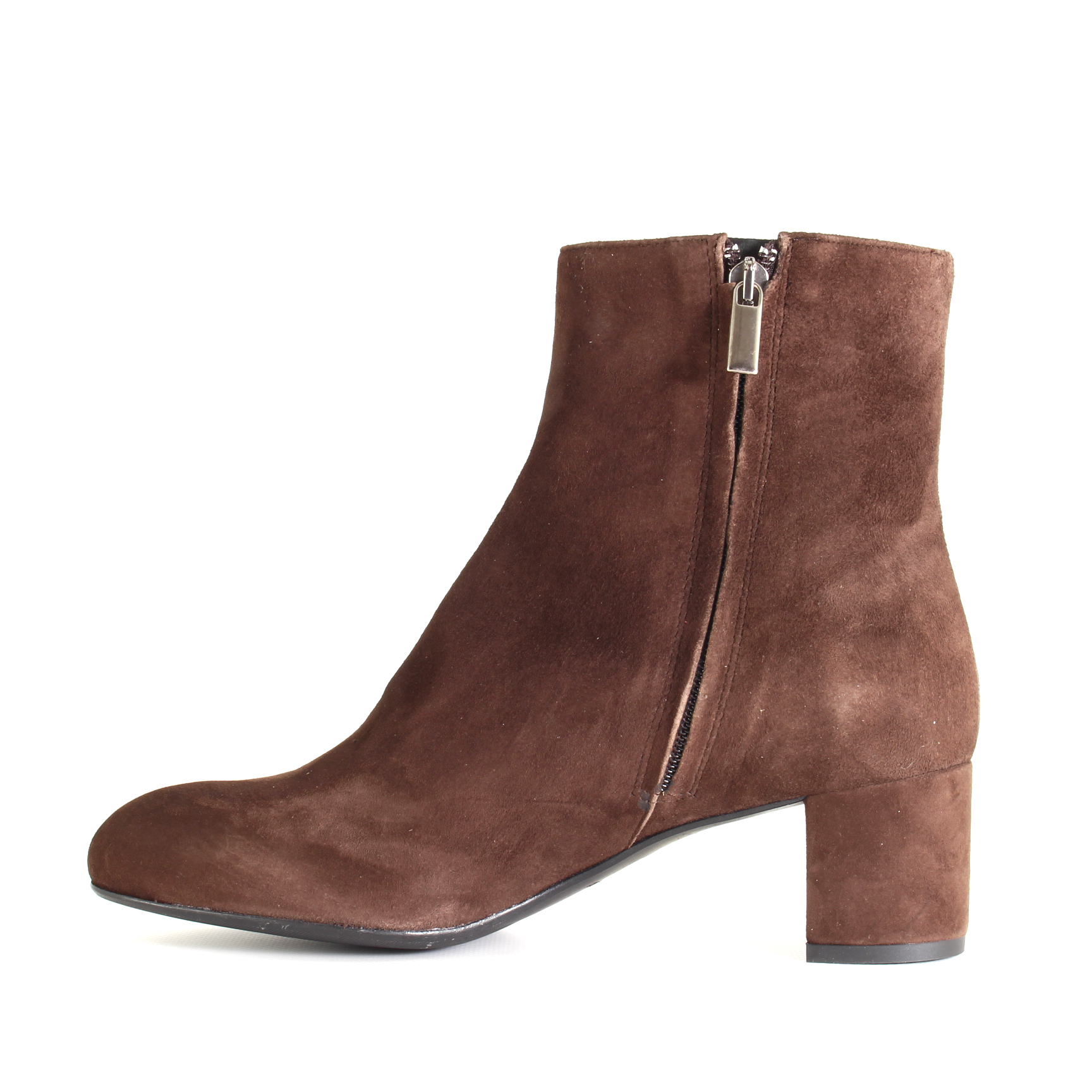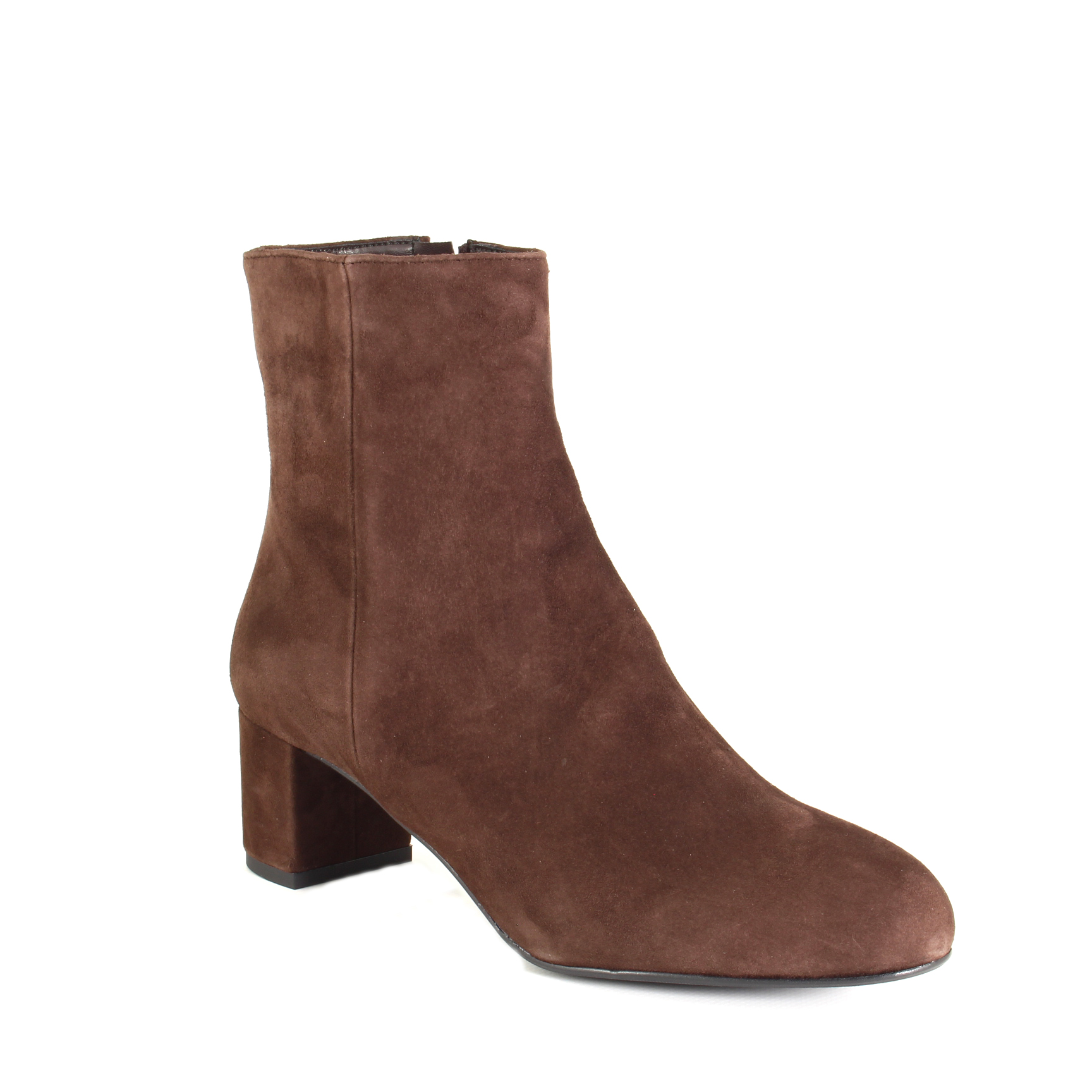 La pelle scamosciata testa di moro, morbida e vellutata al tatto, avvolge il piede con una raffinatezza che resta sempre discreta. La cerniera laterale rende la calzata immediata e pratica, mentre il tacco largo da 5 cm offre comfort e stabilità, permettendoti di affrontare le giornate senza rinunciare a un tocco femminile.