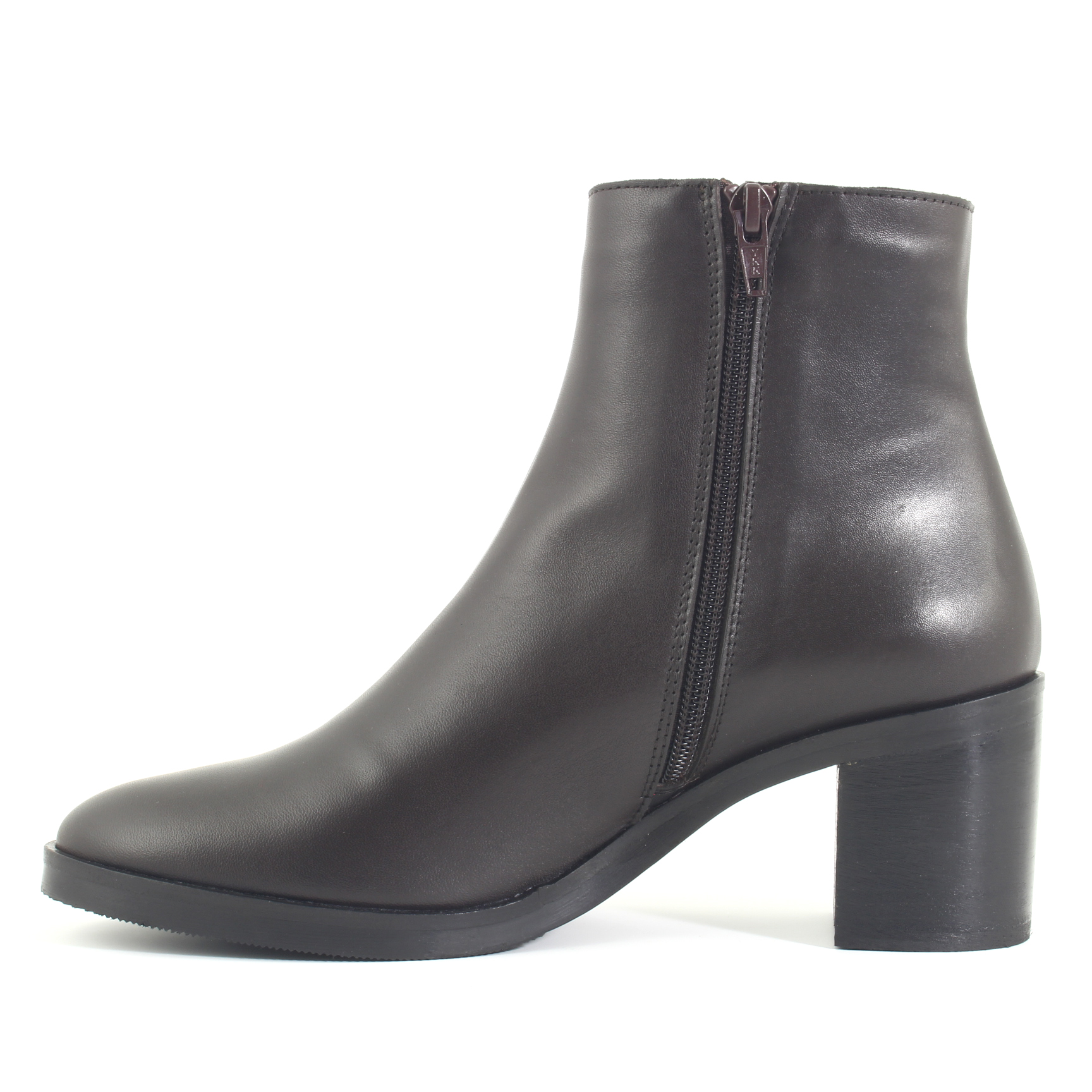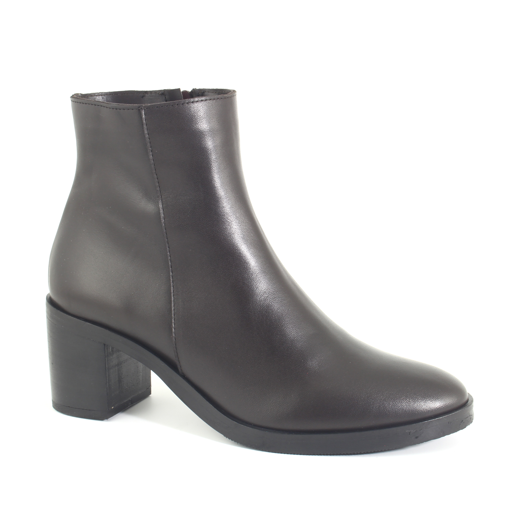 Stivaletto in pelle colore testa di moro con un tacco largo. Questo stivaletto è una scelta sofisticata e versatile per il tuo guardaroba. Il colore testa di moro dona un tocco di calore e classe al tuo look.