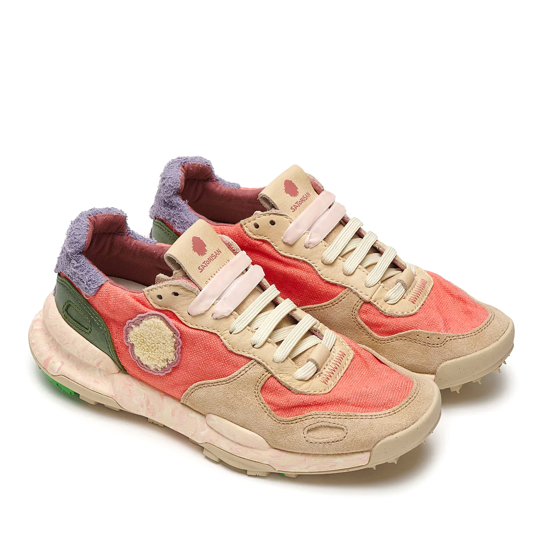 La creazione più consapevole di Satorisan, la Chacrona, si ispira alla foglia della giungla amazzonica utilizzata dalle tribù indigene per connettere mente, corpo e anima. La versione rivisitata di una cross trainer degli anni '80, è super confortevole e resistente.