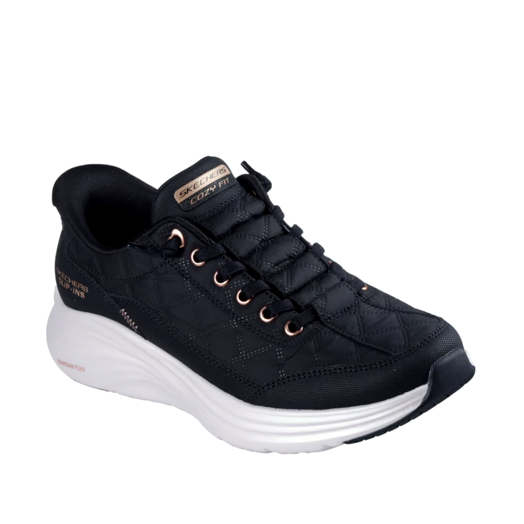 Indossa il comfort morbido e lussuoso di Skechers Hands Free Slip-ins®: Contour Foam™ - Cozy Fit™ Golden Hour. Con l'esclusivo design Heel Pillow™, questo modello slip-on presenta una tomaia Cozy Fit™ trapuntata con applicazioni in duraleather e lacci elasticizzati annodati, un’intersuola con ammortizzazione in Contour Foam™ e l’esclusiva soletta ammortizzata in Skechers Air-Cooled Memory Foam™.