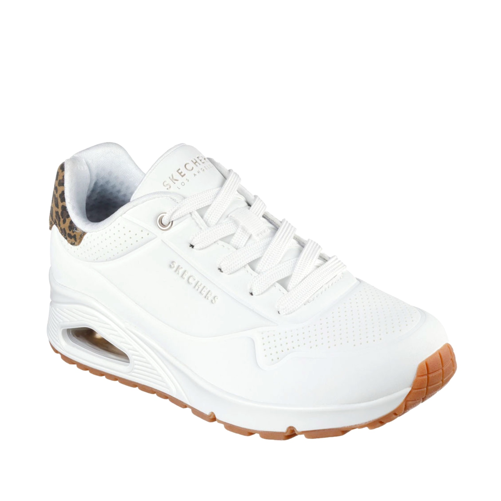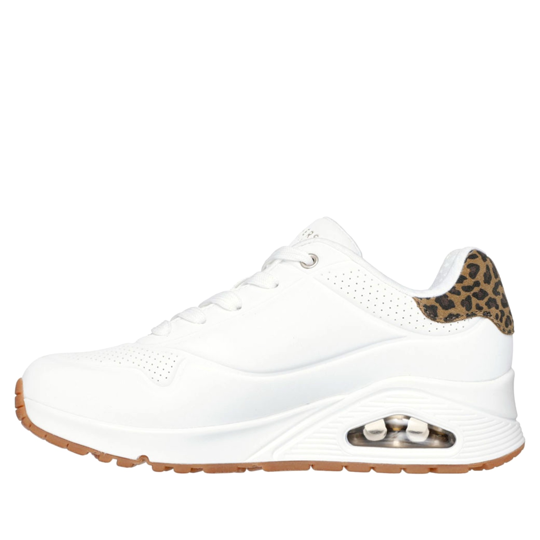 Prova il comfort e il look audace di Skechers Street™ Uno - Jungle Nite. Questa sneaker fashion allacciata presenta una tomaia in materiale tecnico con applicazione a stampa leopardata sul tallone, una soletta Skechers Air-Cooled Memory Foam® e un’intersuola con ammortizzazione ad aria visibile Skech-Air®.