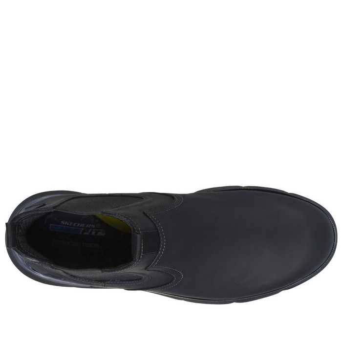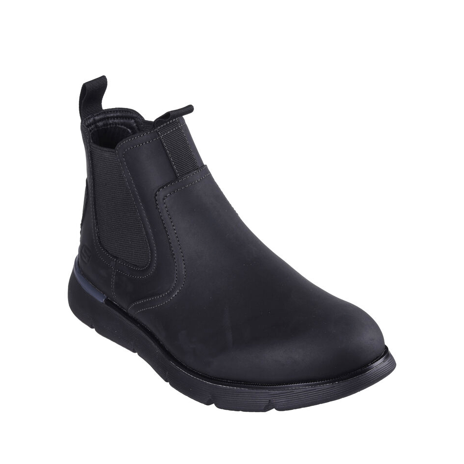 Lo stile moderno incontra il comfort esclusivo in Skechers Augustino - Paulo. Questo stivaletto Classic Fit™ presenta una tomaia in pelle con doppi pannelli in gore, una soletta Skechers Air-Cooled Memory Foam® infusa di carbone e un arco Skechers Goga Mat Arch™ per un supporto aggiuntivo.