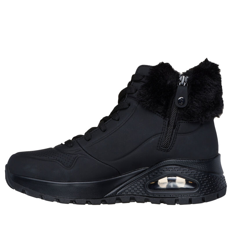 Entra nell’atmosfera da escursionista con Skechers Street™ Uno Rugged - Fall Air. Questo stivaletto sportivo allacciato di tendenza presenta una tomaia in materiale tecnico traforata con finiture in finta pelliccia, Skechers Air Cooled Memory Foam® e intersuola con ammortizzazione ad aria visibile Skech-Air®.