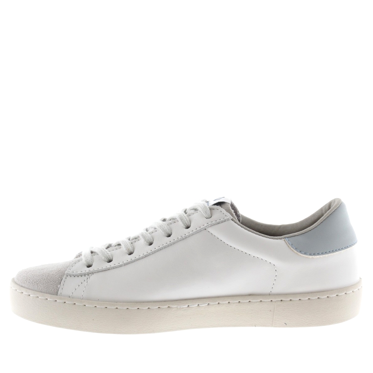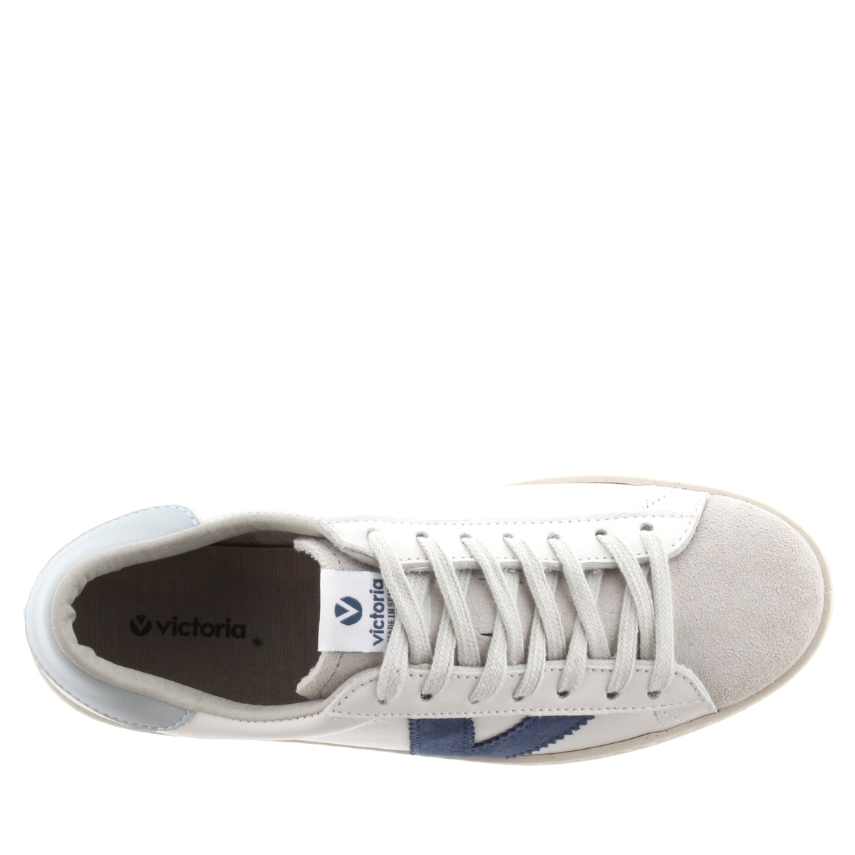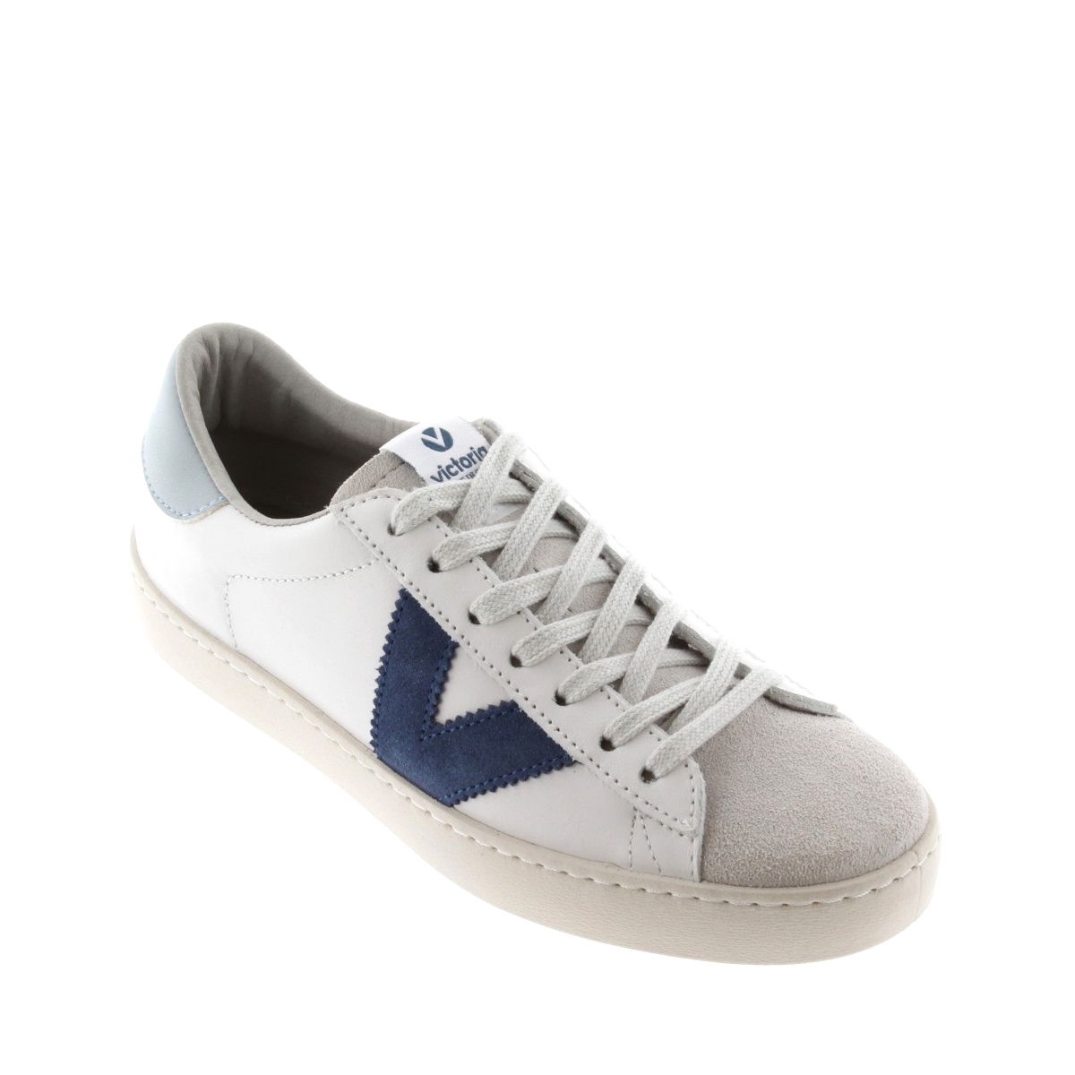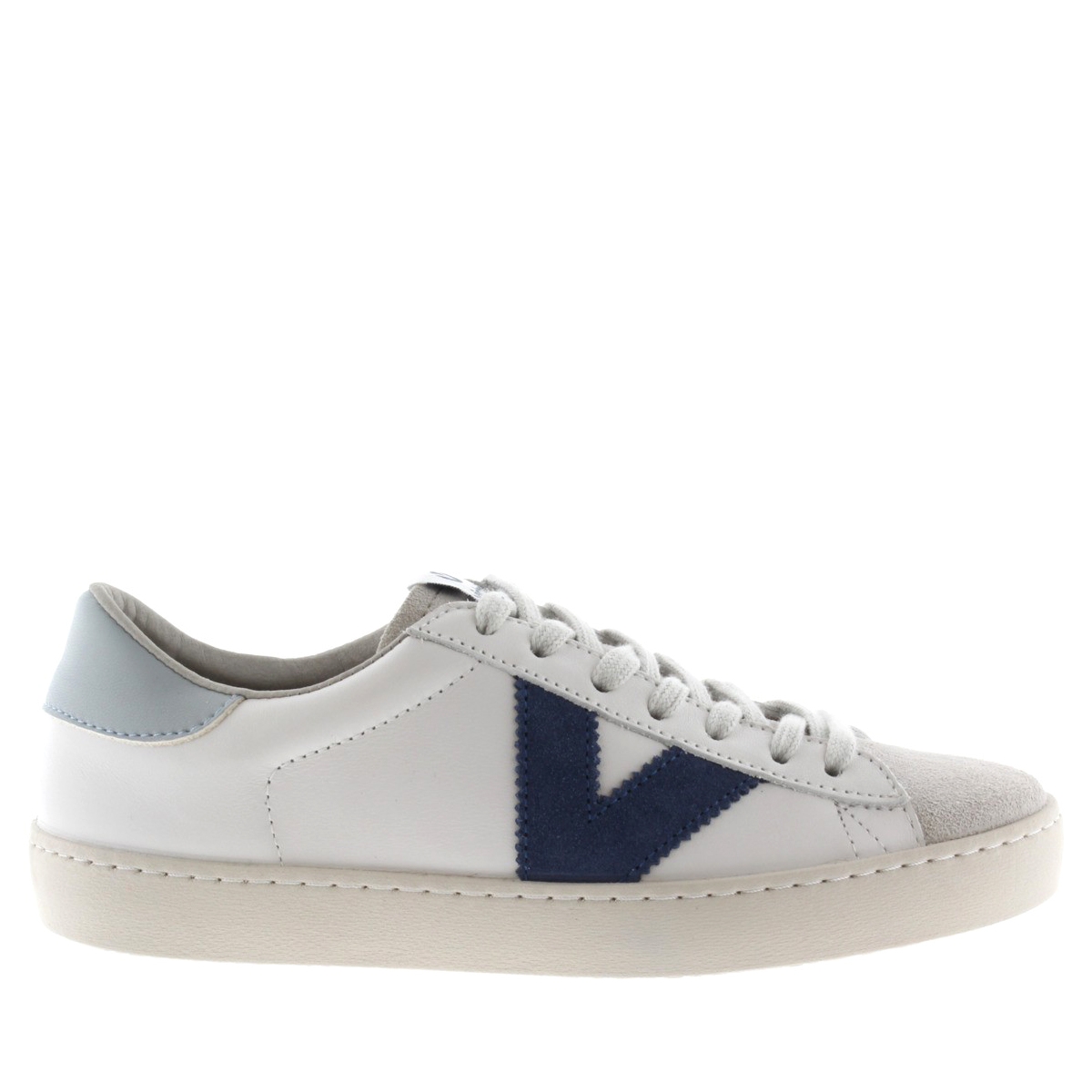 Sneaker 126142, Victoria. Sneakers in pelle 100% senza cromo con medaglia d'argento nella certificazione LWG, che garantisce un uso responsabile di acqua, energia e gestione dei rifiuti nel processo di concia. Il tocco di colore è fornito dalla V for Victoria e dal tacco abbinato. Punta in camoscio. Sneakers Made in Spain, esterno in pelle di vitello senza cromo con medaglia d'argento nella certificazione LWG e punta in camoscio. Fodera in tessuto. Suola in gomma trattata con oli vegetali invece che minerali nella sua composizione. Queste sneakers profumatissime sono proposte in diversi colori.